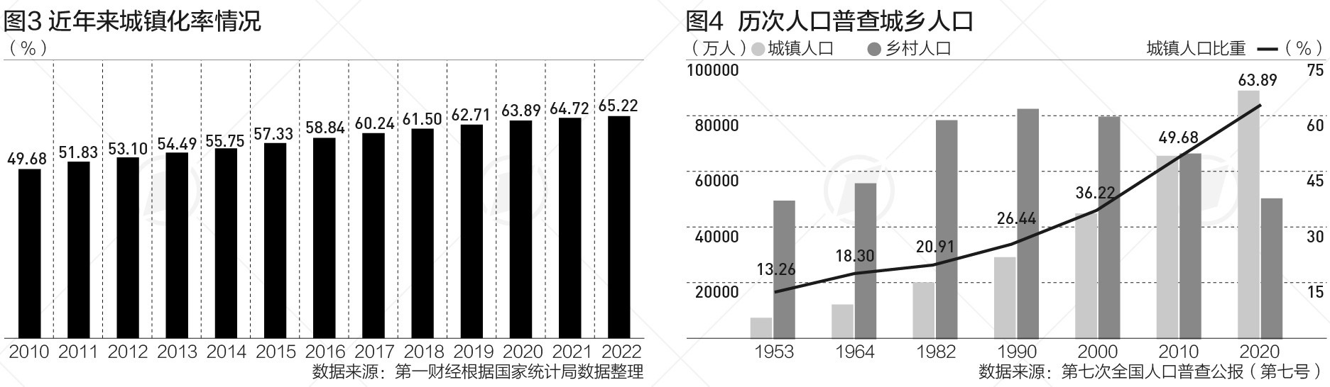 國家統(tǒng)計局?jǐn)?shù)據(jù)顯示,2022年末城鎮(zhèn)常住人口92071萬人,比上年末增加646萬人;鄉(xiāng)村常住人口49104萬人,減少731萬人;城鎮(zhèn)人口占全國人口比重(城鎮(zhèn)化率)為65.22%,比上年末提高0.50個百分點(diǎn)。