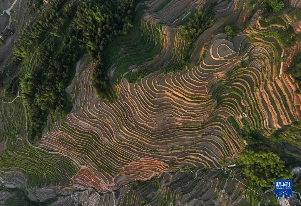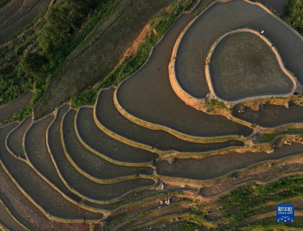 近日,湖南省婁底市新化縣紫鵲界梯田蓄水備耕,水影天光如詩如畫。新華社記者 趙眾志 攝