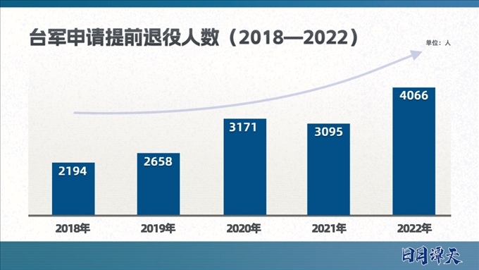 目前,臺軍實(shí)行以志愿役為主,義務(wù)役為輔的混合兵役制度。臺軍的主戰(zhàn)部隊(duì)由志愿役人員構(gòu)成,通過招募而來、至少服役4年,這次上熱搜的“申請?zhí)崆巴艘鄣?000多人”主要就是志愿役士兵。