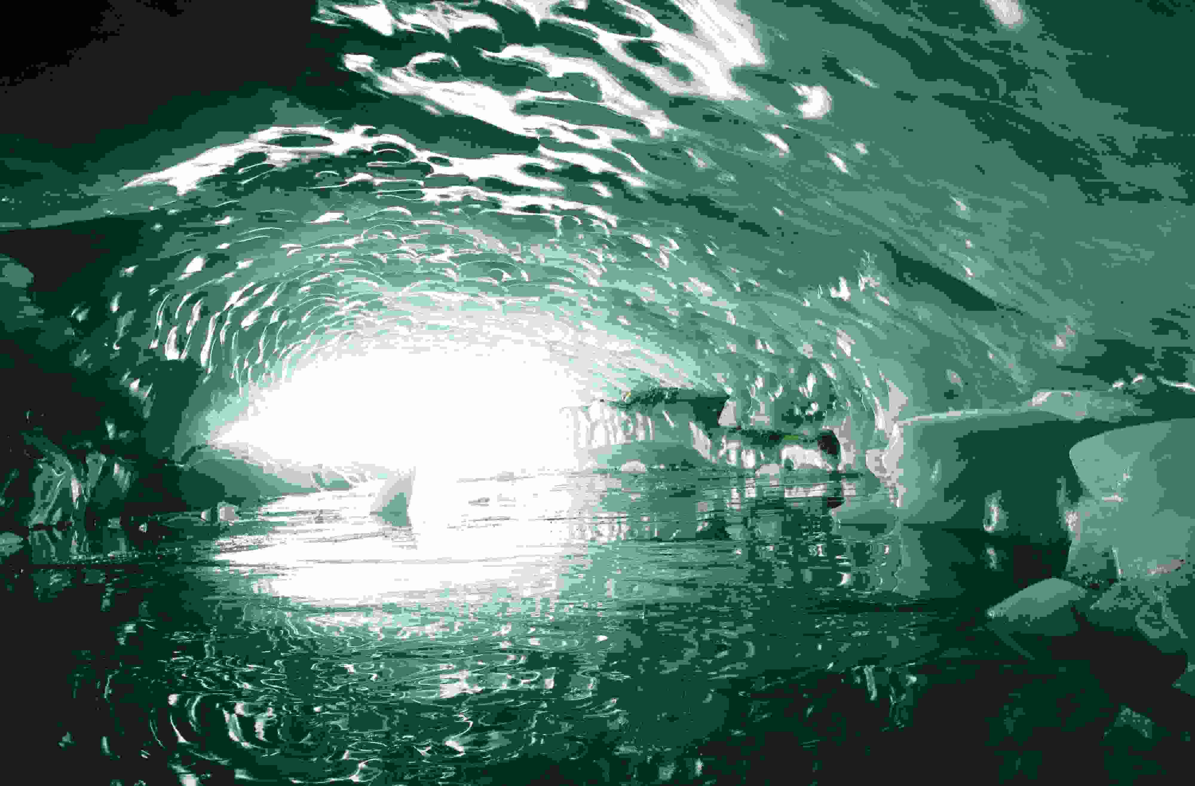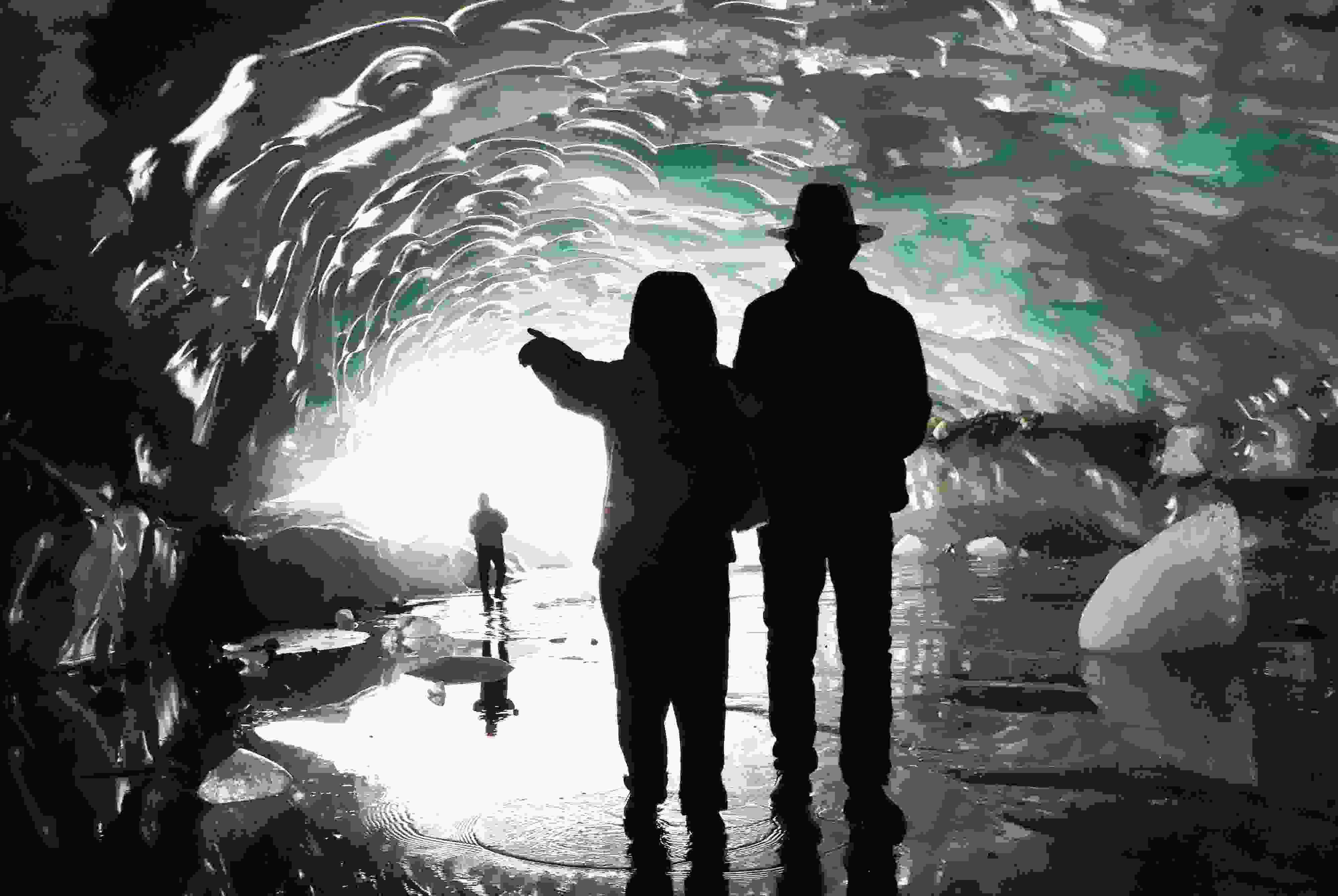 2023年5月21日,西藏昌都,游客在邊壩縣普玉一村游覽冰洞。據(jù)初步勘測(cè),貫穿的冰洞長(zhǎng)約165米、寬約26米、高約15米。呈弧拱造型的冰洞內(nèi)壁上皆是晶瑩剔透的冰柱、冰簾、冰花,其頂部呈“魚鱗”狀,在陽(yáng)光的照射下,呈現(xiàn)出夢(mèng)幻般的景象。 視覺(jué)中國(guó)