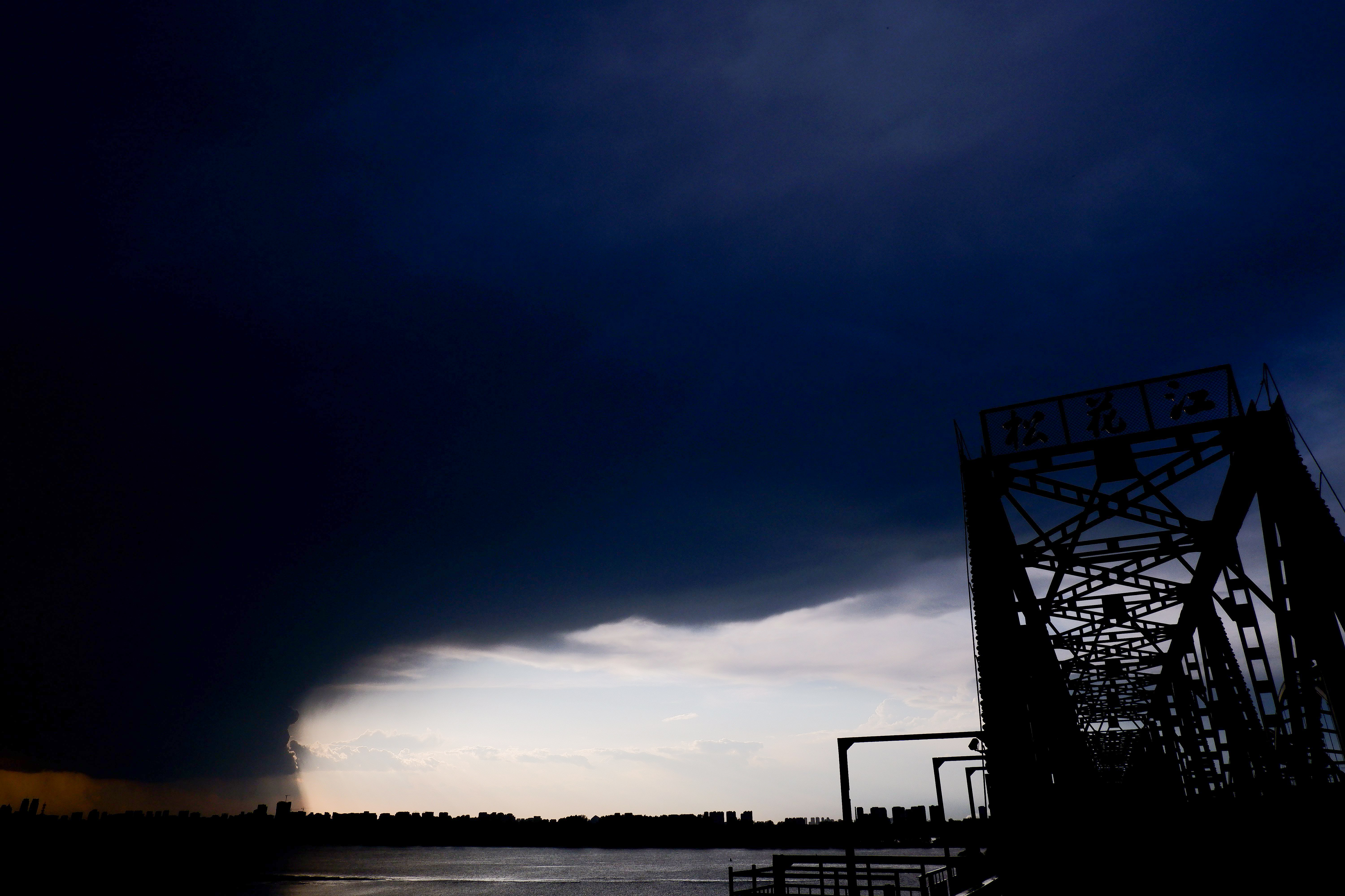 5月21日下午,黑龍江省哈爾濱市迎來強(qiáng)降雨天氣,整座城市被雷暴云籠罩,白晝?nèi)缫梗鹑缟涎菘苹么笃? (吳胡荼 攝)