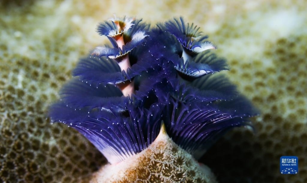 這是在蜈支洲島海域海洋牧場(chǎng)拍攝的圣誕樹管蟲(2021年5月23日攝)。   新華社記者 楊冠宇 攝