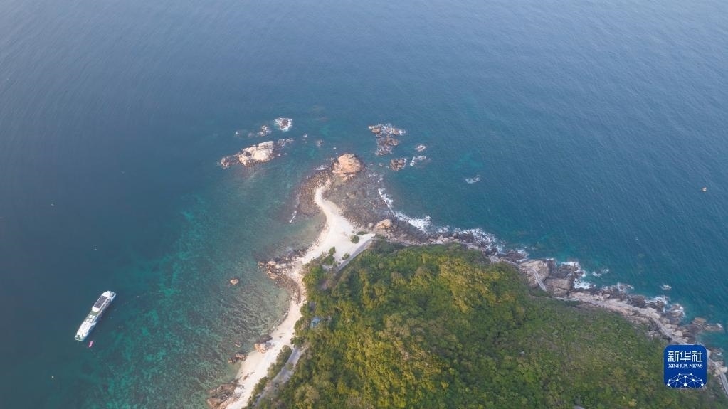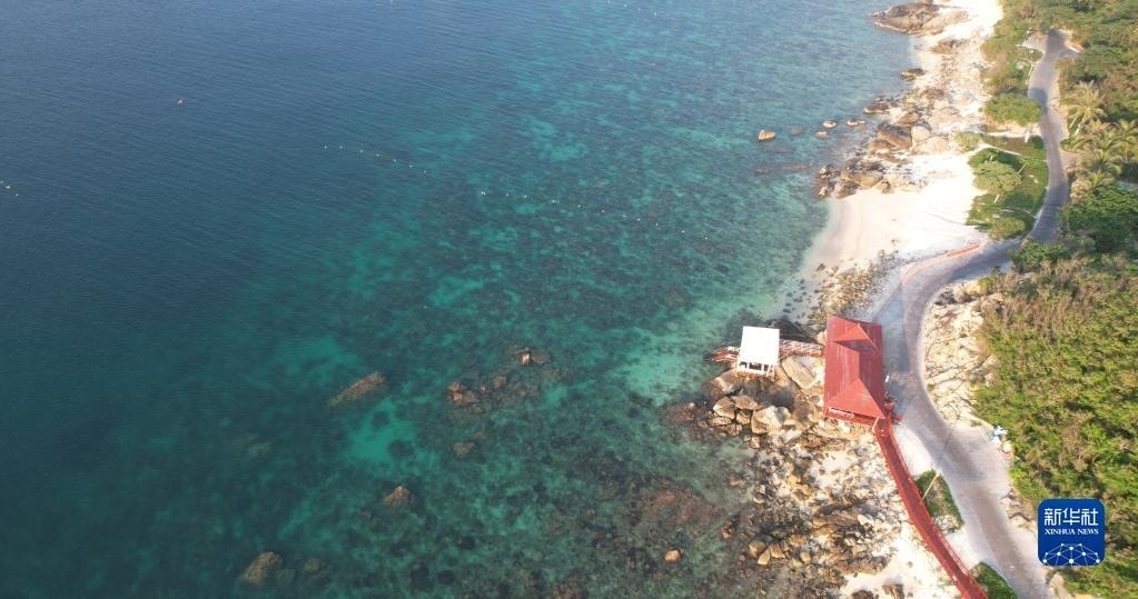 這是5月18日拍攝的海南三亞蜈支洲島海域海洋牧場(chǎng)(無(wú)人機(jī)照片)。   新華社記者 樊雨晴 攝