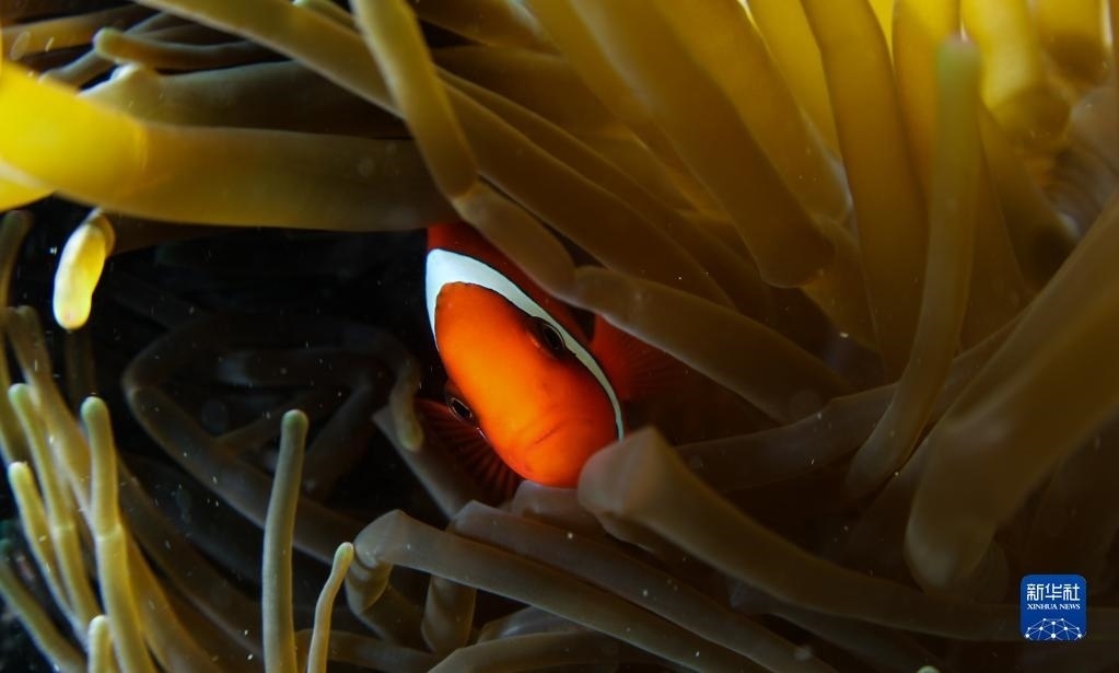 這是在蜈支洲島海域海洋牧場(chǎng)拍攝的小丑魚(5月17日攝)。 新華社記者 楊冠宇 攝