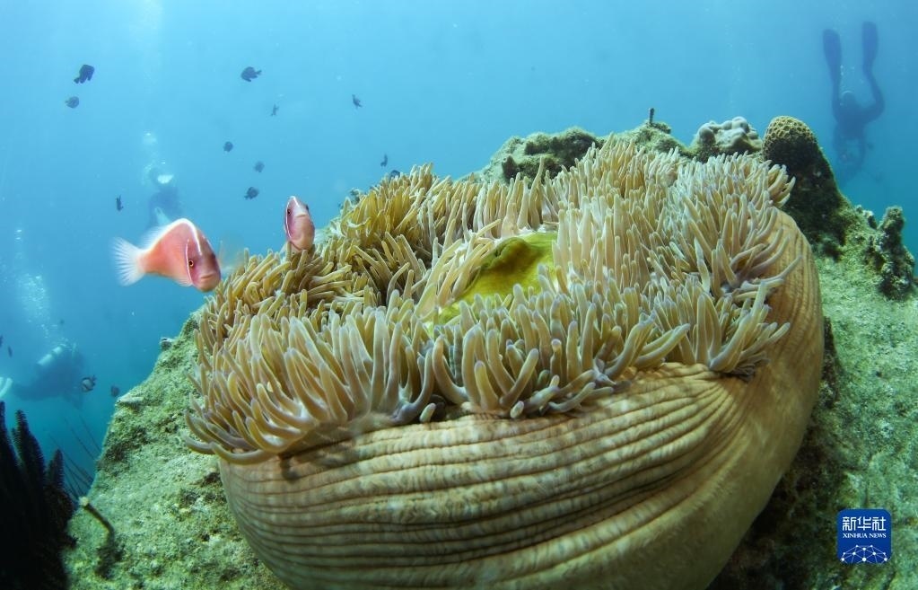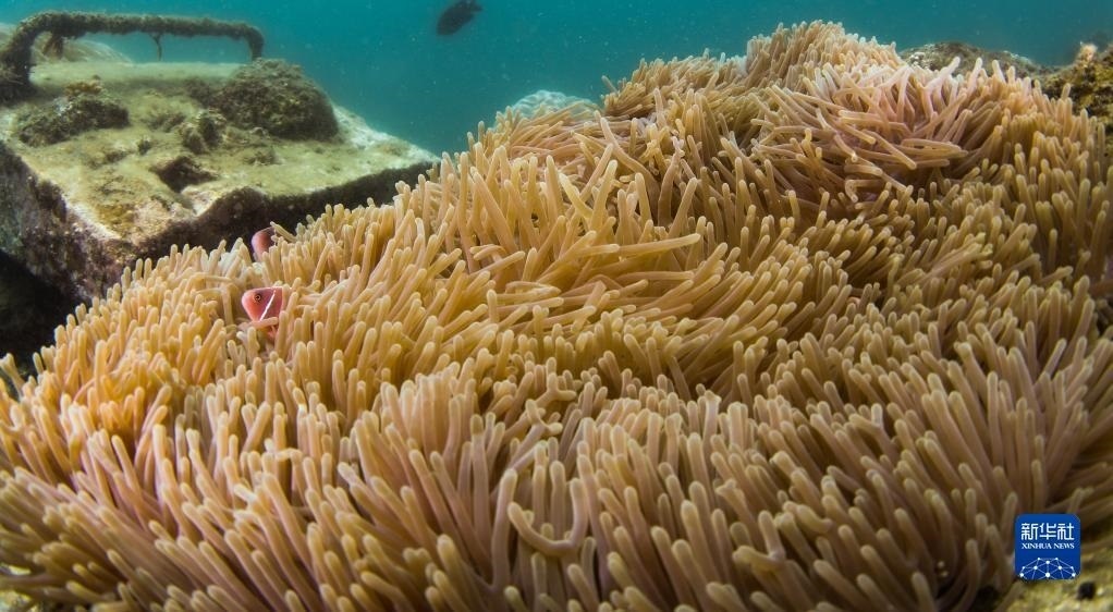 這是在蜈支洲島海域海洋牧場(chǎng)拍攝的小丑魚和???月18日攝)。   新華社記者 楊冠宇 攝