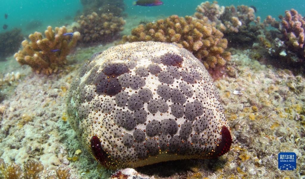 這是在蜈支洲島海域海洋牧場(chǎng)拍攝的面包海星(5月16日攝)。   新華社記者 楊冠宇 攝