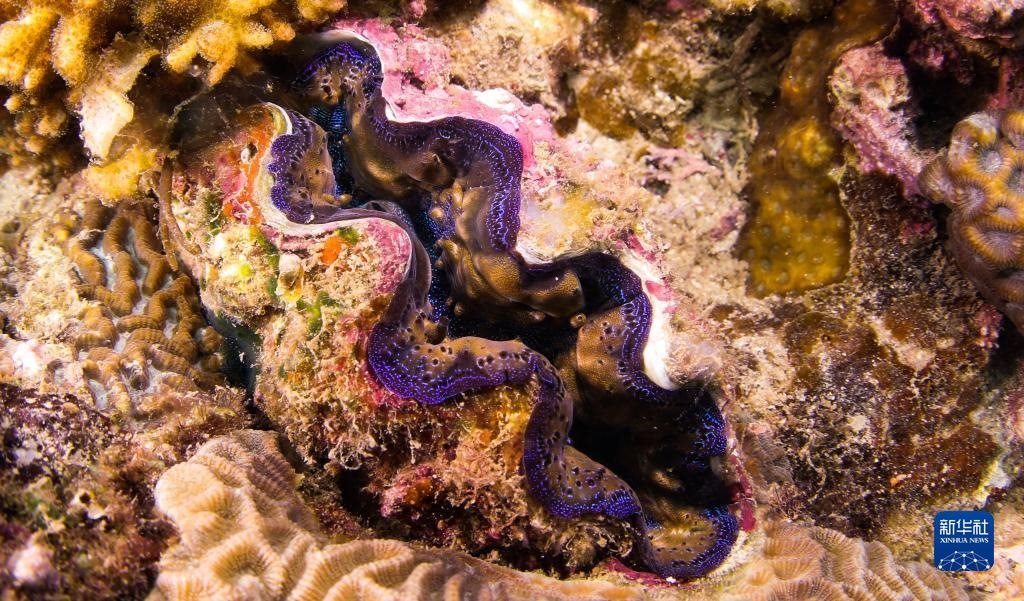 這是在蜈支洲島海域海洋牧場(chǎng)拍攝的硨磲(5月17日攝)。   新華社記者 楊冠宇 攝