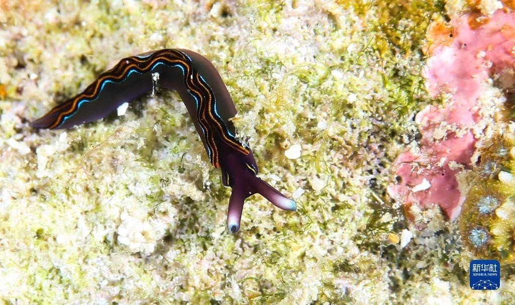 這是在蜈支洲島海域海洋牧場(chǎng)拍攝的海蛞蝓(2021年5月25日攝)。   新華社記者 楊冠宇 攝