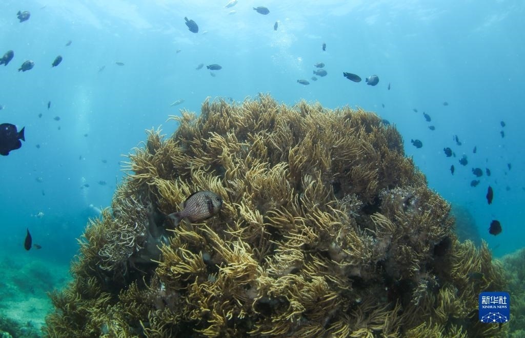 目前,蜈支洲島海域已移植珊瑚3.5萬(wàn)多株,海洋生態(tài)環(huán)境的不斷改善,也讓種類繁多、形態(tài)各異的海洋生物在蜈支洲島海域海洋牧場(chǎng)聚集、繁殖、生長(zhǎng),共同構(gòu)成一個(gè)多姿多彩的水下世界。   新華社記者 楊冠宇 攝
