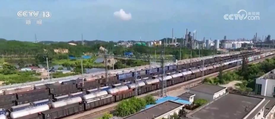 在西部陸海新通道關(guān)鍵節(jié)點的欽州港東站,鐵海聯(lián)運貨物上下列車、進出港口24小時不停歇,每天最多到發(fā)的鐵海聯(lián)運班列有21列。截至目前,西部陸海新通道鐵海聯(lián)運班列已輻射我國17省份、60市、115個車站,通達全球119個國家和地區(qū)的393個港口。