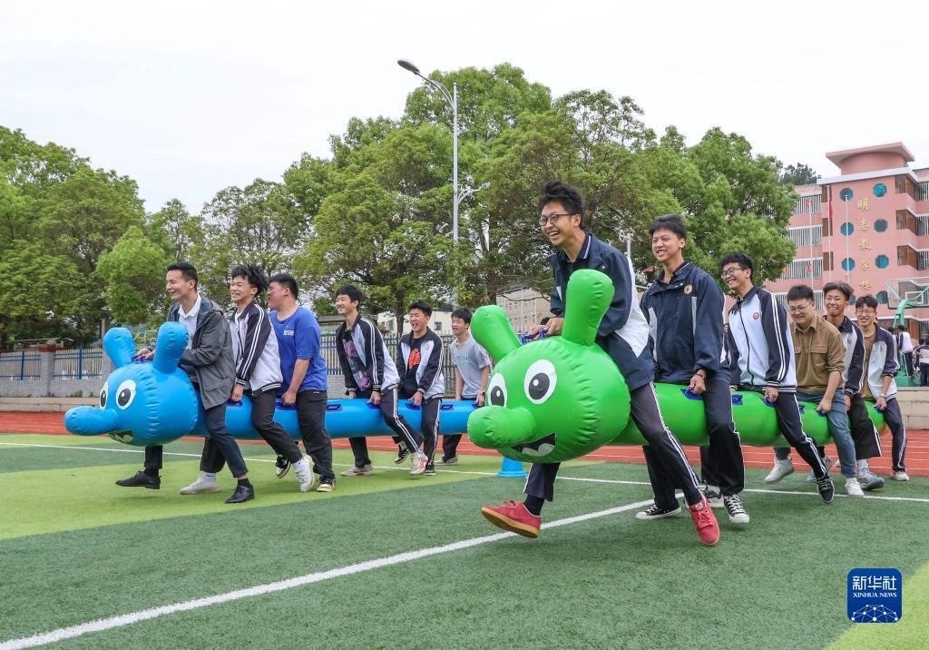 5月23日,四川省廣安市武勝中學(xué)高三學(xué)生開展“同心擊鼓”心理調(diào)適趣味游戲活動(dòng)。
