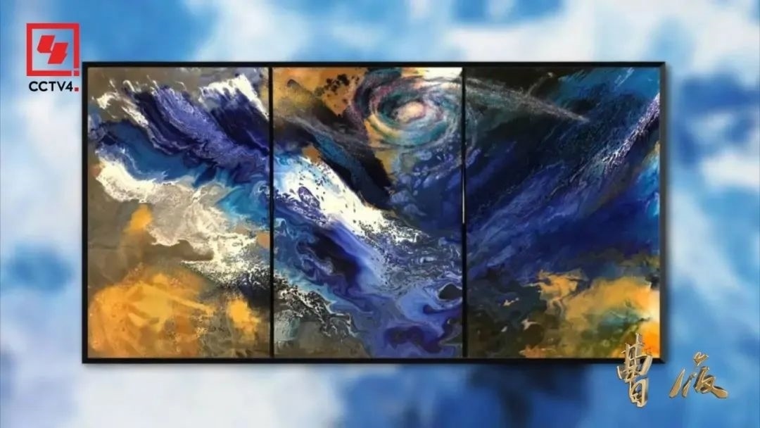 曹俊把中國的繪畫方式和西方的顏色技法相結(jié)合,以俯視地球的視角創(chuàng)作出了一組抽象作品,他把這些作品命名為“宇宙”系列,在這些作品中,他訴說了自己看到新西蘭自然景象時(shí)的心理活動(dòng)。