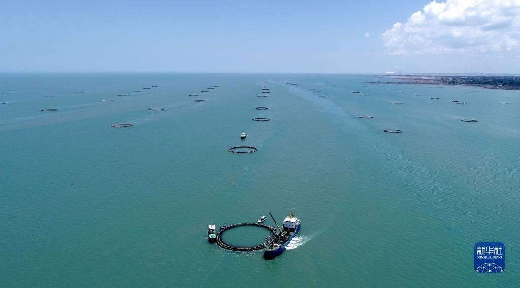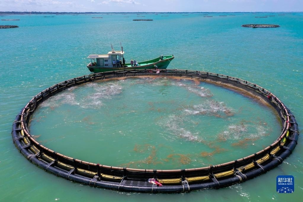 湛江徐聞西連鎮(zhèn)的“海上牧場(chǎng)”(5月27日攝,無(wú)人機(jī)全景照片)。