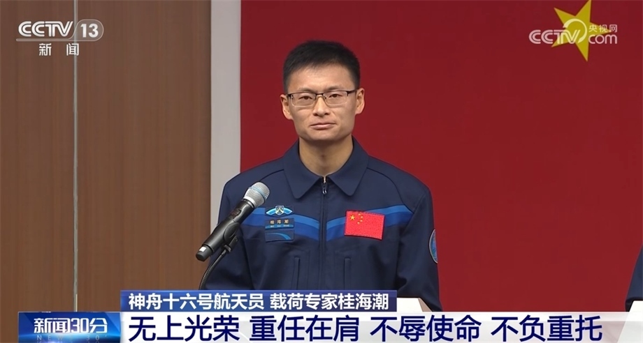 神舟十六號航天員 載荷專家桂海潮:作為載荷專家,我主要負責載荷的管理、維護、維修,從事空間科學實驗,包括實驗設備操作,實驗條件控制,數(shù)據(jù)收集、整理和分析。盡管我們乘組有分工,但我們是分工不分家,每一項操作,每一項任務,我們都互為備份,共同完成。相信在指令長的帶領下,在我們乘組的密切配合下,在廣大航天人的支持下,我們一定能圓滿完成使命。