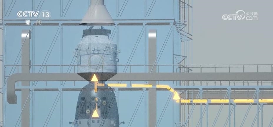 總臺央視記者 勞春燕:這個發(fā)射塔架就好像是一個100多米高的“鋼鐵巨人”。它有一個學名叫“臍帶塔”,為什么叫這個名字?因為塔架里有各種線纜和管路,就像嬰兒的臍帶一樣,可以為火箭和飛船輸送能量與養(yǎng)分。另外,塔架還裝了空調和保溫層,可以為船箭創(chuàng)造一個合適的環(huán)境。有了它的全方位保護,火箭適應環(huán)境的能力大大提高,即使碰上零下20℃的極寒天氣依然可以正常發(fā)射。