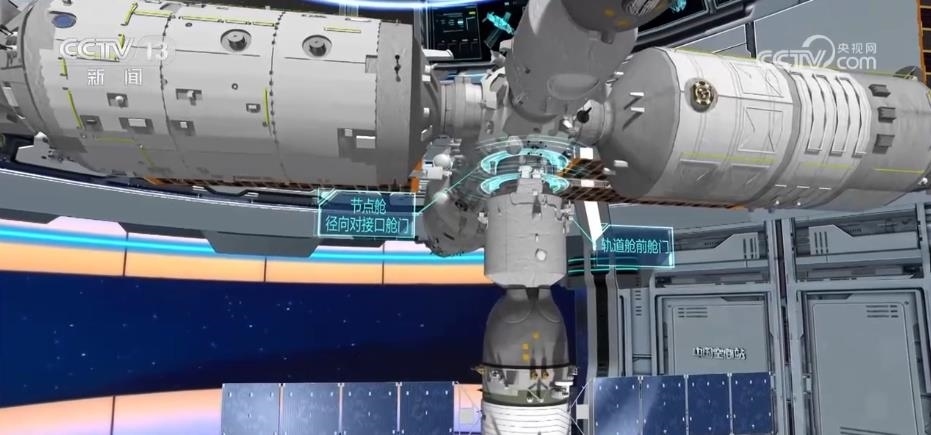 在此之后,神舟十六號航天員就可以打開第二道門——飛船軌道艙的前艙門。而與此同時,神舟十五號乘組航天員也將在對接通道的另一端,打開第三道門——空間站節(jié)點艙徑向?qū)涌诘呐撻T,迎接新一批航天員的到來。