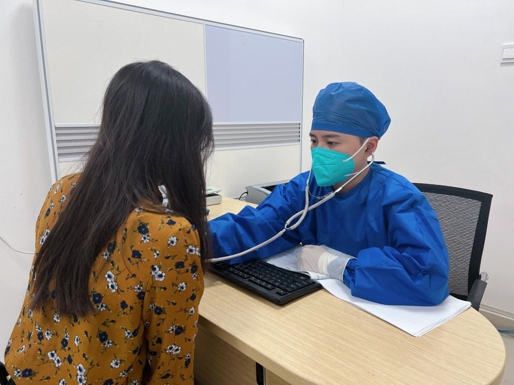 5月31日,在江西省人民醫(yī)院發(fā)熱門(mén)診,醫(yī)生為一名患者做檢查。新華社記者 閔尊濤 攝