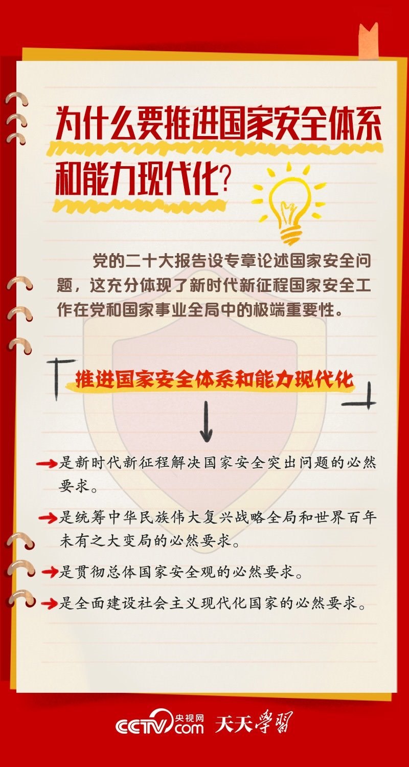 總書(shū)記多次強(qiáng)調(diào)要推進(jìn)國(guó)家安全體系和能力現(xiàn)代化。央視網(wǎng)《天天學(xué)習(xí)》梳理相關(guān)內(nèi)容,帶您了解總書(shū)記治國(guó)理政關(guān)鍵詞——國(guó)家安全體系和能力現(xiàn)代化。
