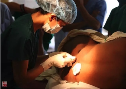 2010年11月12日,“和平方舟”號醫(yī)院船麻醉師盛睿芳對沁的母親實施麻醉,準備剖腹產(chǎn)。新華社記者琚振華攝