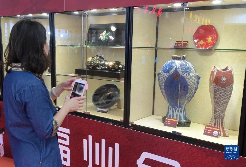 6月2日,參觀者在拍攝福州脫胎漆器。