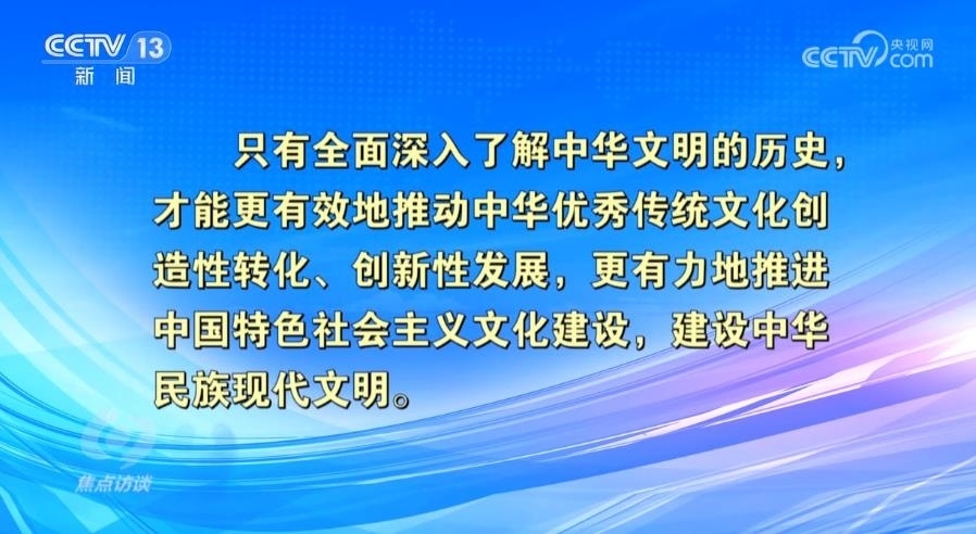 中國(guó)歷史研究院副院長(zhǎng)李國(guó)強(qiáng):“當(dāng)代中國(guó)是歷史中國(guó)的延續(xù),中華文明五千年的發(fā)展歷程,深刻揭示了一個(gè)道理,只有傳承好優(yōu)秀傳統(tǒng)文化,才能夠支撐我們前進(jìn)的動(dòng)力,才能更好地指引我們前進(jìn)的方向。所以我們要對(duì)中華五千年文明史有深刻的把握,因?yàn)橹腥A文明是鑄造民族精神的根和脈,是我們?cè)谑澜顼L(fēng)云激蕩中站穩(wěn)腳跟的源頭活水,也是我們?cè)谛碌臅r(shí)代里面,增強(qiáng)文化自信的重要支點(diǎn)。”