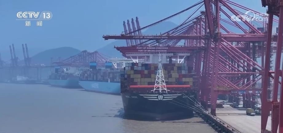 央視網(wǎng)消息:近日,我國自主研制的超大型集裝箱船“地中海米歇爾卡佩里尼”輪首航。該輪首站??繉幉ㄖ凵礁鄞┥礁蹍^(qū)集裝箱碼頭,從此開啟其航運之旅。這已是穿山港區(qū)78天內(nèi)迎來的第3艘超大型集裝箱貨輪首航。