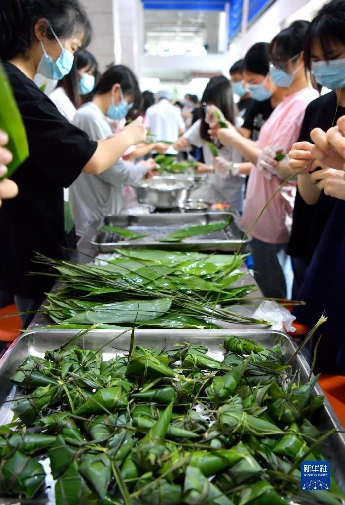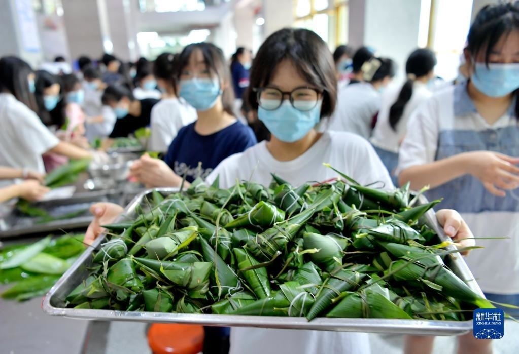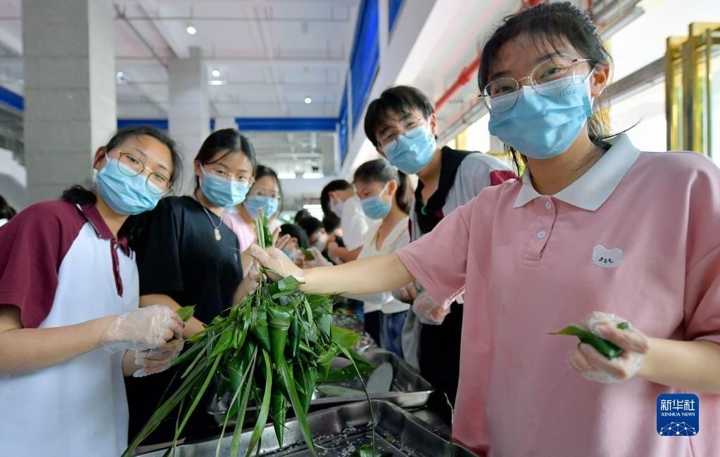當(dāng)日,湖北省恩施土家族苗族自治州宣恩縣第一高級(jí)中學(xué)組織高三學(xué)生參加傳統(tǒng)手工包粽子比賽,讓即將踏入考場的學(xué)生在親自動(dòng)手體驗(yàn)傳統(tǒng)文化的過程中舒緩心情、釋放壓力,以輕松的心態(tài)迎接高考。   新華社發(fā)(宋文攝)