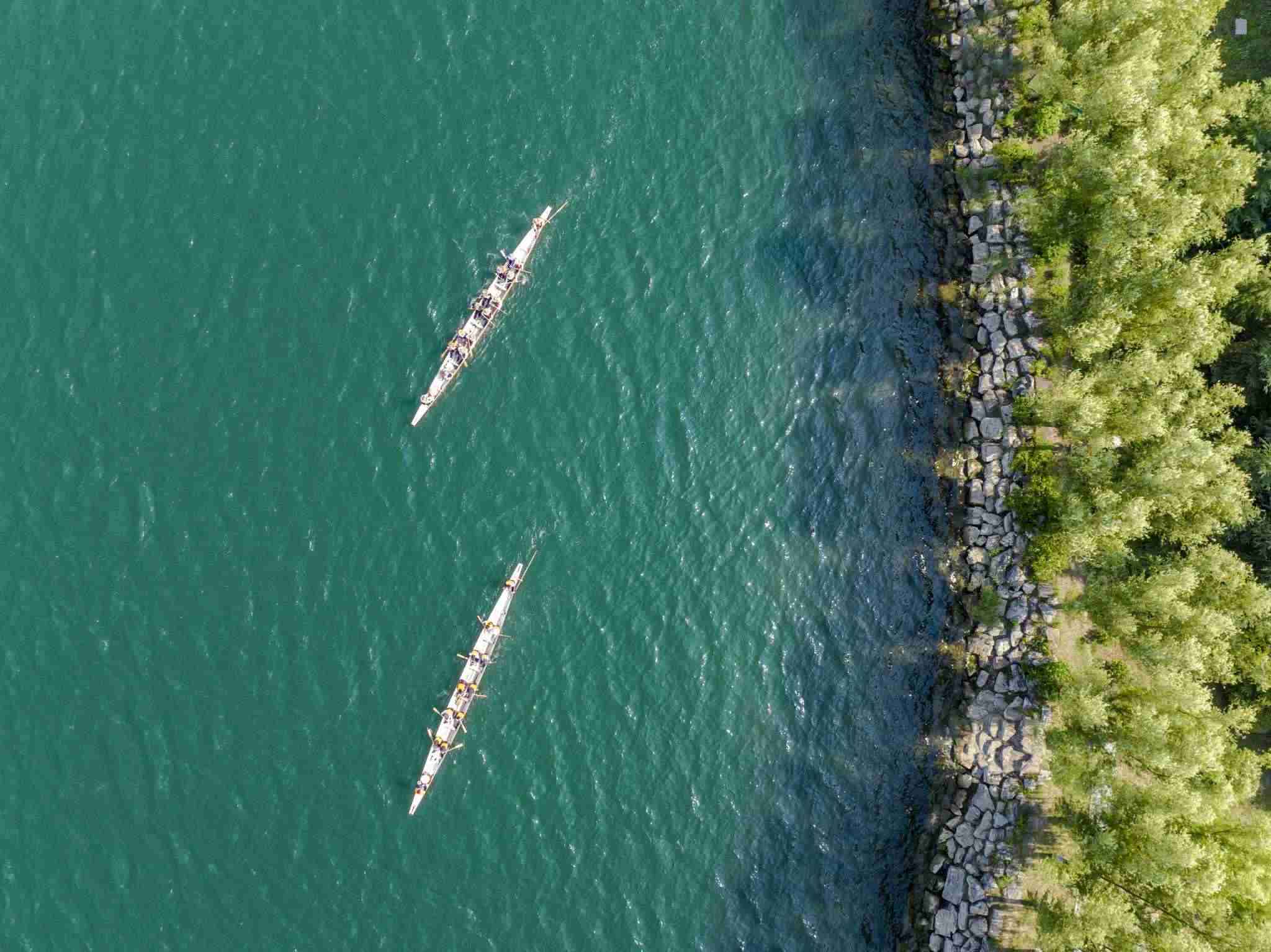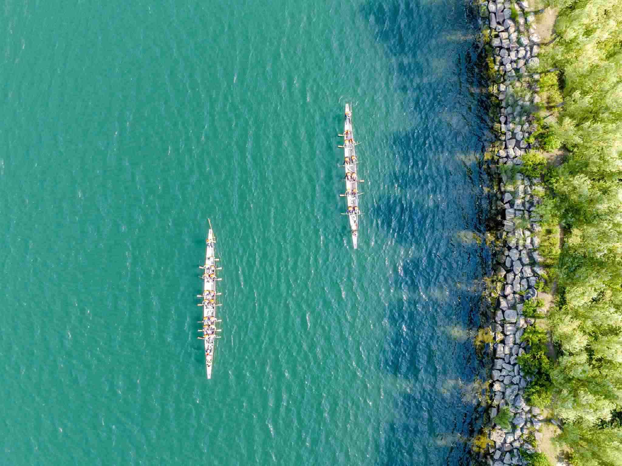 2023年6月8日,江蘇連云港,東海縣西雙湖風(fēng)景區(qū),多支龍舟隊(duì)在西雙湖水域進(jìn)行訓(xùn)練,積極備戰(zhàn)端午龍舟賽。視覺中國