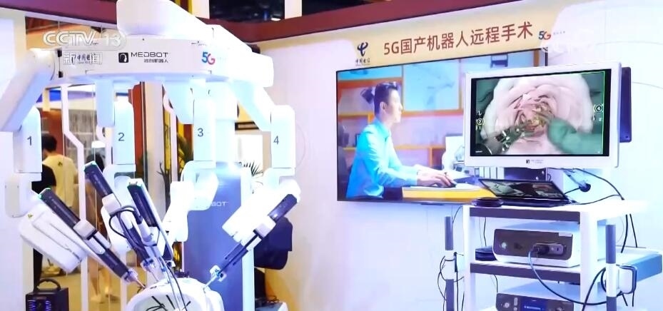 這臺5G機(jī)器人正在用一朵鮮花模擬人體臟器手術(shù),而實際操刀的醫(yī)生是在上海通過5G網(wǎng)絡(luò)來進(jìn)行遠(yuǎn)程手術(shù)。