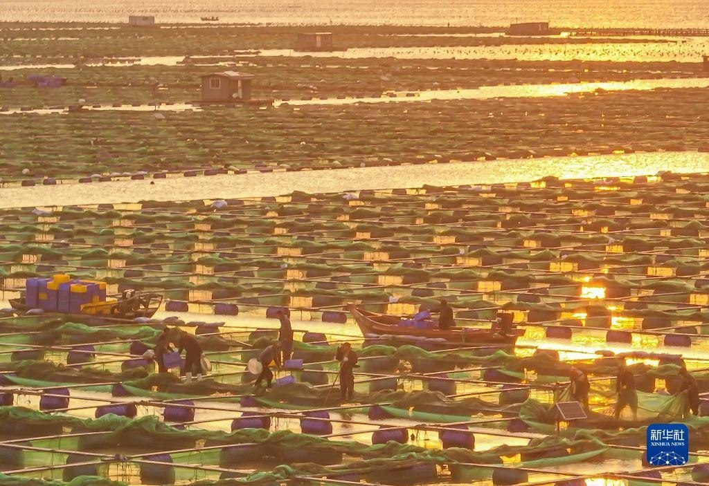 山東榮成:海洋牧場(chǎng)朝霞如畫