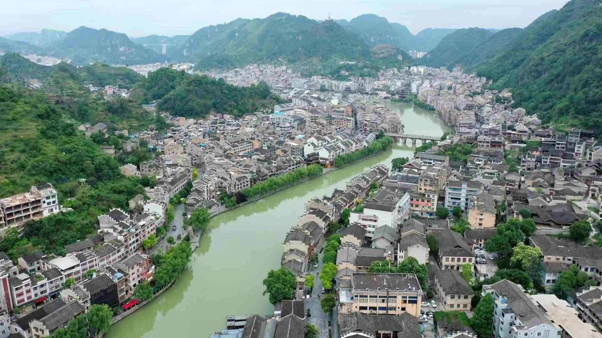 2023年6月7日,航拍貴州鎮(zhèn)遠,舞陽河穿城而過。