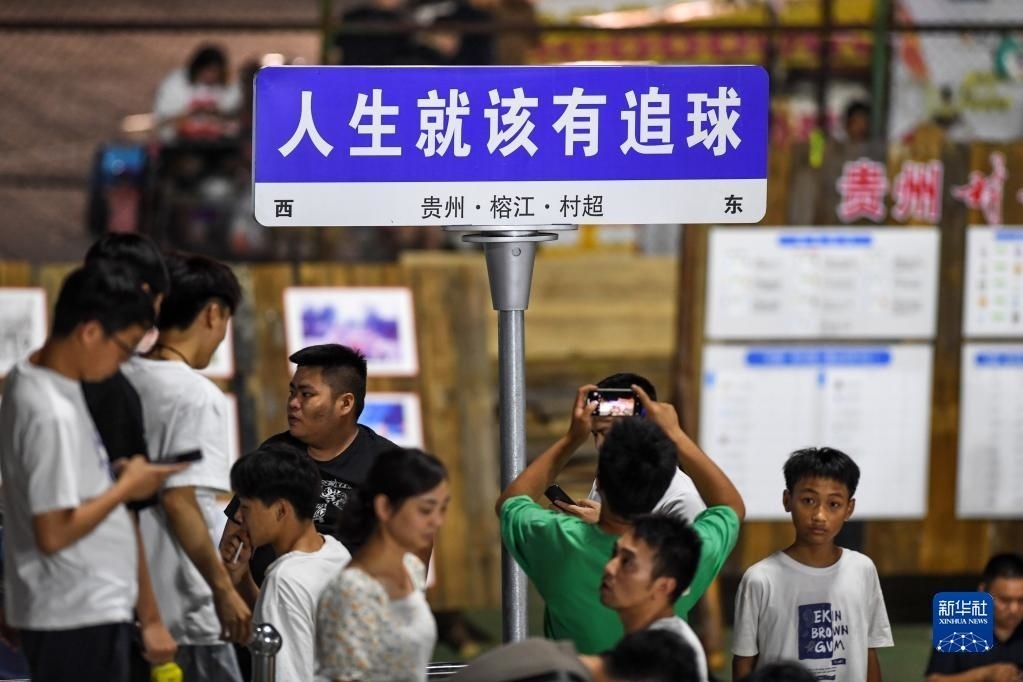 這是6月9日在貴州“村超”足球比賽現(xiàn)場(chǎng)拍攝的一處標(biāo)語(yǔ)牌。