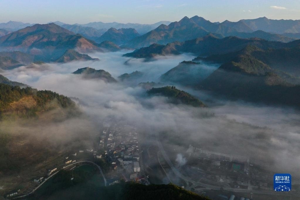 浙江杭州淳安縣屏門鄉(xiāng)風(fēng)光(無人機(jī)照片,3月10日攝)。新華社記者 徐昱 攝