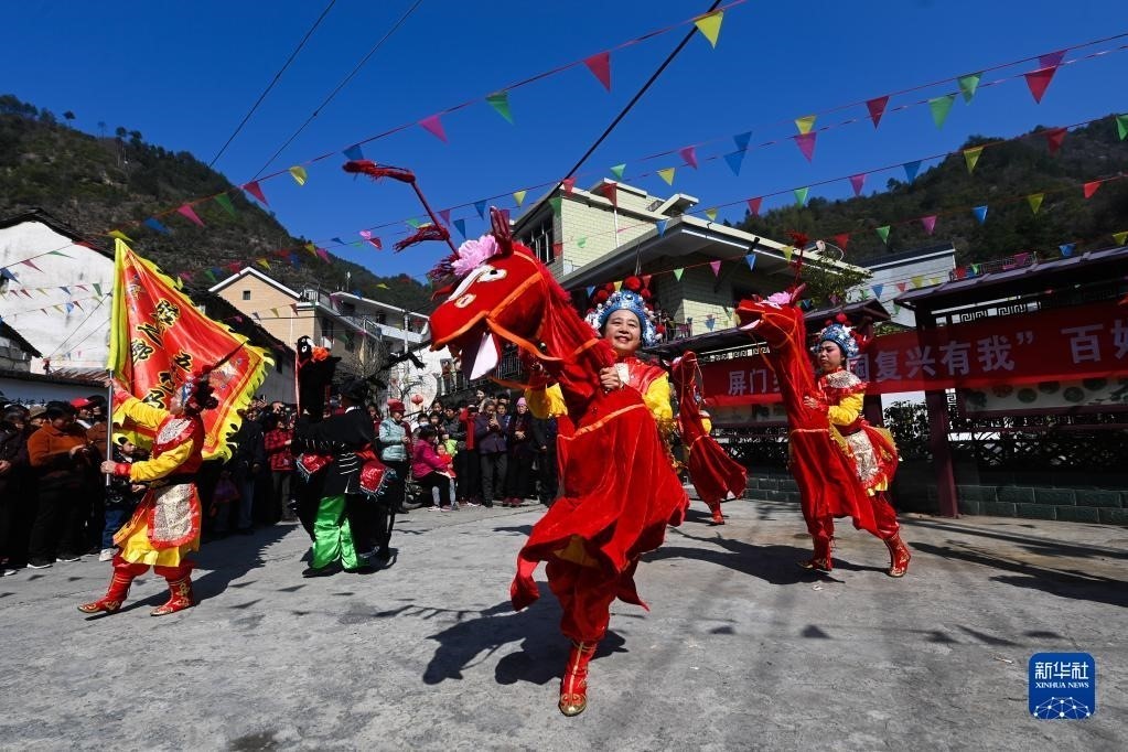 浙江杭州淳安縣屏門鄉(xiāng)屏前村傳統(tǒng)廟會(huì)上的竹馬表演(3月10日攝)。近年來,屏門鄉(xiāng)當(dāng)?shù)貙⒚袼妆硌荨⑻で噘p春、農(nóng)家特產(chǎn)展賣等融入傳統(tǒng)廟會(huì)中,成為美麗山鄉(xiāng)的春季熱鬧“大戲”,助力鄉(xiāng)村文旅融合發(fā)展和共同富裕。新華社記者 徐昱 攝