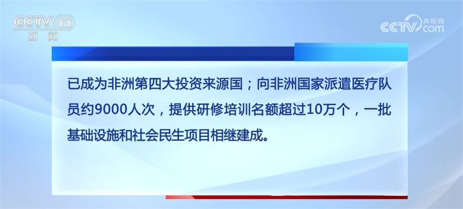 合作規(guī)模不斷擴(kuò)大。中非貿(mào)易總額累計(jì)超2萬(wàn)億美元,中國(guó)始終保持非洲第一大貿(mào)易伙伴國(guó)地位。中國(guó)企業(yè)在非新簽承包工程合同額超7000億美元,完成營(yíng)業(yè)額超4000億美元;中國(guó)對(duì)非直接投資流量累計(jì)超300億美元,已成為非洲第四大投資來(lái)源國(guó);向非洲國(guó)家派遣醫(yī)療隊(duì)員約9000人次,提供研修培訓(xùn)名額超過10萬(wàn)個(gè),一批基礎(chǔ)設(shè)施和社會(huì)民生項(xiàng)目相繼建成。