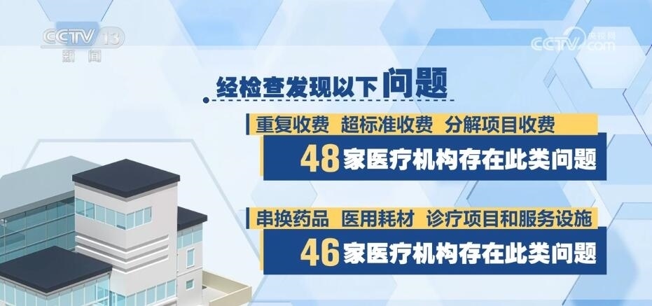 國家飛檢組共抽查了48家定點醫(yī)療機構(gòu),包括三級公立醫(yī)院40家、三級民營醫(yī)院3家、二級以下民營醫(yī)療機構(gòu)5家,經(jīng)檢查發(fā)現(xiàn)以下問題:一、重復(fù)收費、超標準收費、分解項目收費,48家醫(yī)療機構(gòu)存在此類問題。二、串換藥品、醫(yī)用耗材、診療項目和服務(wù)設(shè)施,46家醫(yī)療機構(gòu)存在此類問題。三、將不屬于醫(yī)?;鹬Ц斗秶尼t(yī)藥費用納入醫(yī)保基金結(jié)算,43家醫(yī)療機構(gòu)存在此類問題。四、違反診療規(guī)范過度診療、過度檢查、超量開藥,39家醫(yī)療機構(gòu)存在此類問題。此外,部分醫(yī)療機構(gòu)存在分解住院,藥品、醫(yī)用耗材進銷存不符,未嚴格執(zhí)行國家組織藥品耗材集中帶量采購政策,按病種付費模式下高靠病組、低標準入院等其他違法違規(guī)問題;一些醫(yī)療機構(gòu)存在虛構(gòu)醫(yī)藥服務(wù)項目問題。