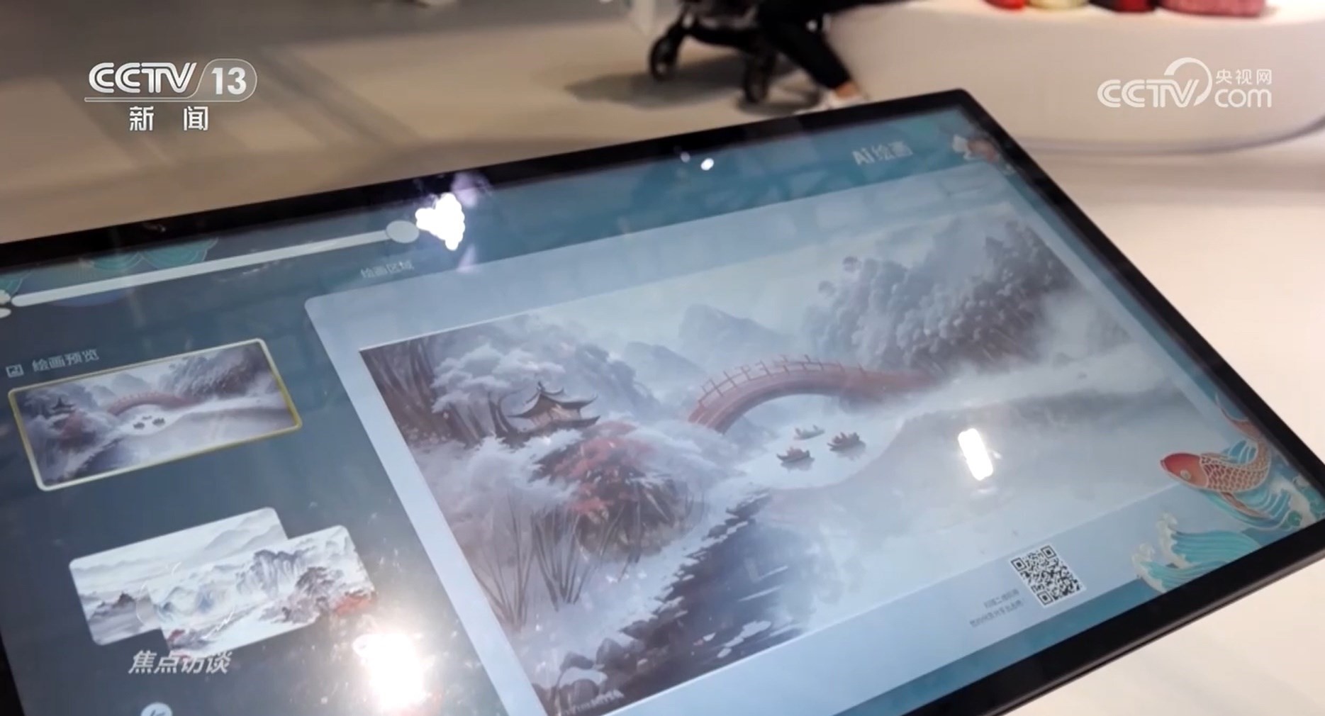 體驗(yàn)一把AI繪畫(huà)是很多觀展小朋友的愿望,從一名繪畫(huà)小白變成國(guó)畫(huà)大師需要多久?文博會(huì)給我們的答案是5秒。深圳某科技公司剛剛研發(fā)出的AI作畫(huà)機(jī),根據(jù)用戶畫(huà)出的圖案不斷進(jìn)行造型演變,展開(kāi)豐富聯(lián)想最終創(chuàng)作合成出國(guó)風(fēng)山水畫(huà)作。