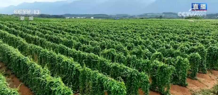 央視網(wǎng)消息: 當下,在廣西賀州市富川瑤族自治縣,上萬畝的淮山正陸續(xù)進入營養(yǎng)生長期,村民們忙著開展各種管護工作。總臺記者廖汨就正在富川的一個淮山種植基地,馬上來連線她。