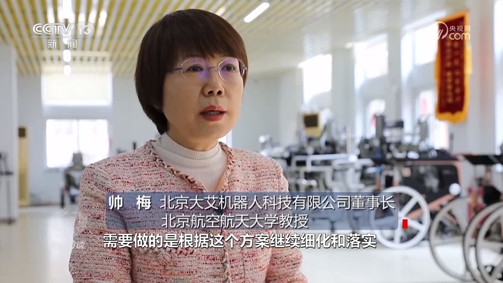 北京大艾機器人科技有限公司董事長、北京航空航天大學教授帥梅:“就是通過外骨骼機器人訓練,來給他建立正確的行走模式,以及正確的本體感覺,讓他能重新行走?!?/p>