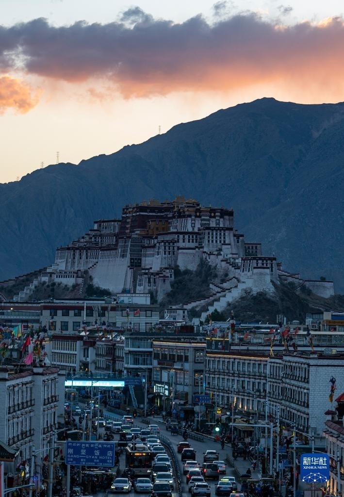這是日落時分的布達拉宮(6月7日攝)。