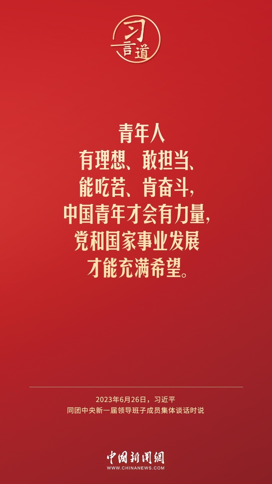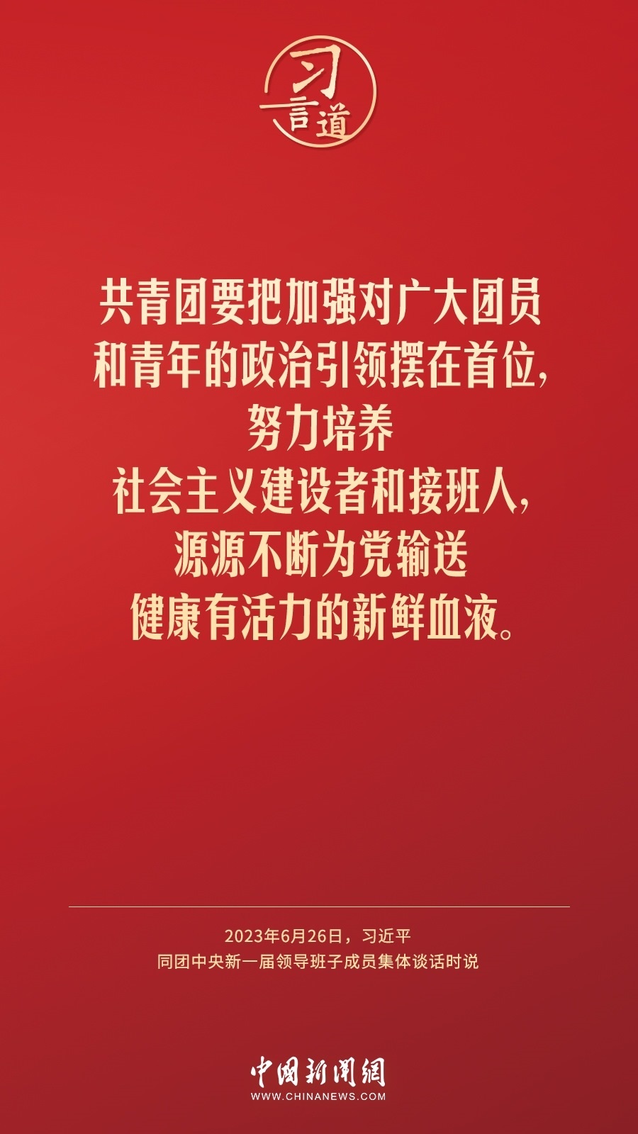 6月26日,中共中央總書記、國家主席、中央軍委主席習(xí)近平在中南海同團(tuán)中央新一屆領(lǐng)導(dǎo)班子成員集體談話并發(fā)表重要講話。習(xí)近平指出——