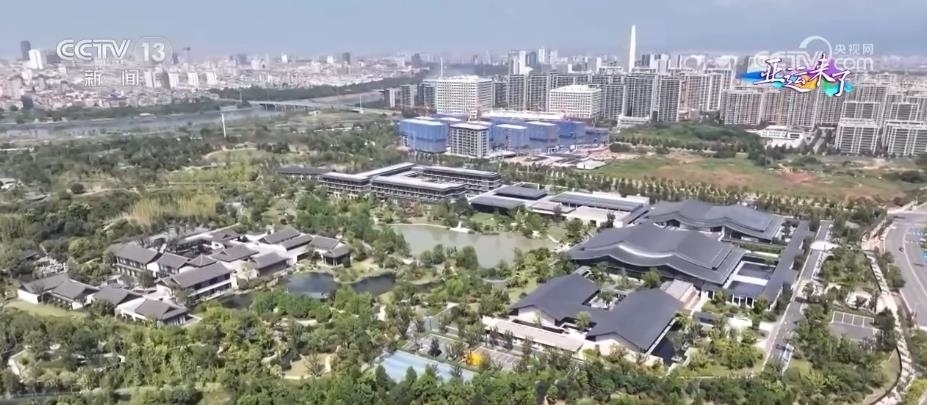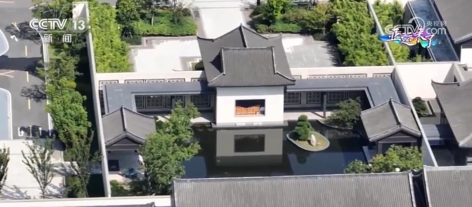 坡屋頂、灰瓦白墻,這里是金華的亞運(yùn)分村。這個村的建設(shè)非常具有金華特色,各個建筑的外形吸取了江南造園精髓,灰瓦白墻、小橋流水,各式綠植樹木沿著水系有序分布。
