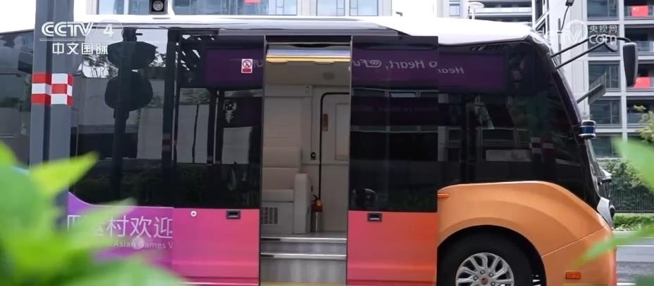 總臺(tái)記者 黃珊:亞運(yùn)村里的AR智能巴士在全自動(dòng)巡航狀態(tài)下,能為乘客提供接駁、講解的服務(wù)。正前方的特殊窗戶(hù)結(jié)合車(chē)載AR功能,透過(guò)它能夠看到車(chē)外的實(shí)時(shí)影像,結(jié)合虛擬場(chǎng)景,虛實(shí)結(jié)合,非常奇妙。