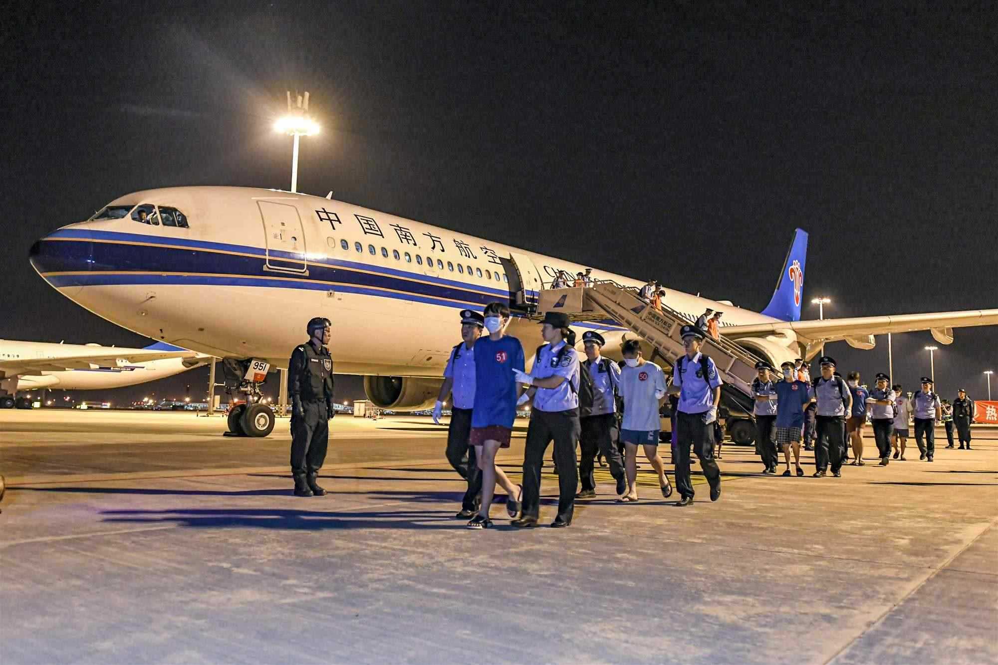 央視網(wǎng)消息:9月20日晚,隨著三架中國民航包機分別降落在北京大興國際機場和濟南遙墻國際機場,前期中國警方和印度尼西亞警方通過警務(wù)執(zhí)法合作抓獲的153名實施跨境裸聊敲詐的電信網(wǎng)絡(luò)詐騙犯罪嫌疑人,被北京、山東公安機關(guān)從印尼押解回國,涉及全國多個省市的百余起跨境裸聊敲詐案件成功告破。