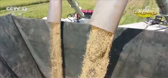 在宜春高安市上湖鄉(xiāng)上湖村,大面積水稻也正在收割中,機(jī)械化作業(yè)提高了效率,一株株水稻脫粒后,從收割機(jī)倉(cāng)門傾瀉而下。