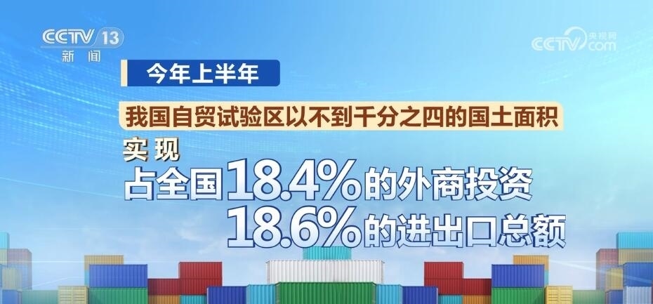 十年間,我國自貿(mào)試驗(yàn)區(qū)的總面積從不到30平方公里發(fā)展到3.8萬平方公里左右,涉及51個城市和海南島全島。今年上半年,我國自貿(mào)試驗(yàn)區(qū)以不到千分之四的國土面積,實(shí)現(xiàn)了占全國18.4%的外商投資和18.6%的進(jìn)出口總額,帶動全國形成了覆蓋東西南北中、統(tǒng)籌沿海內(nèi)陸沿邊的改革開放創(chuàng)新格局。