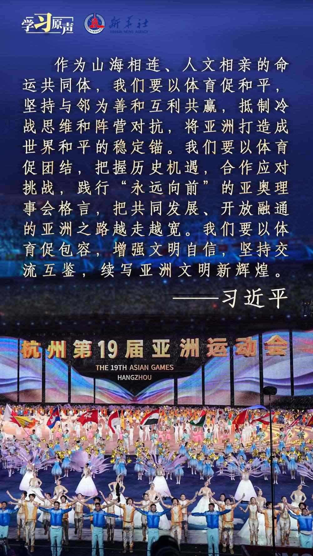 秋分時(shí)節(jié),舉世矚目的杭州第十九屆亞洲運(yùn)動(dòng)會(huì)隆重開(kāi)幕。“亞洲運(yùn)動(dòng)會(huì)承載著亞洲人民對(duì)和平、團(tuán)結(jié)、包容的美好向往。”習(xí)近平主席在杭州第十九屆亞洲運(yùn)動(dòng)會(huì)開(kāi)幕式歡迎宴會(huì)上的致辭,傳遞著熱情友好的情誼,宣示了新時(shí)代中國(guó)推動(dòng)亞洲大家庭團(tuán)結(jié)合作的堅(jiān)定決心,為促進(jìn)亞洲和國(guó)際奧林匹克運(yùn)動(dòng)發(fā)展、共建亞洲命運(yùn)共同體注入強(qiáng)大信心與力量。