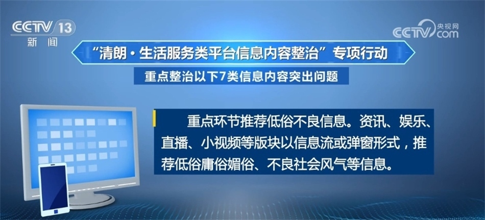 重點環(huán)節(jié)推薦低俗不良信息。資訊、娛樂、直播、小視頻等版塊以信息流或彈窗形式,推薦低俗庸俗媚俗、不良社會風(fēng)氣等信息?!?/p>