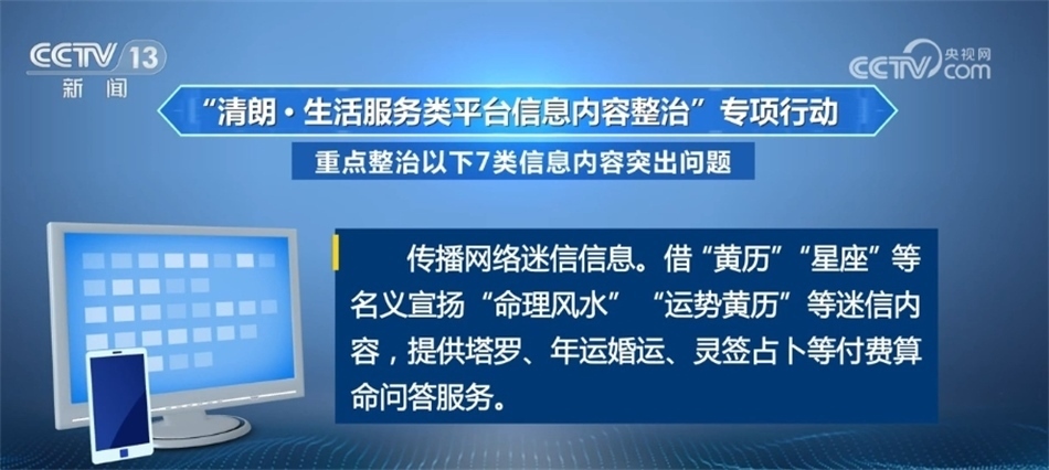 此次專項行動覆蓋團(tuán)購評價、婚戀交友、搜索引擎、影視點評、天氣日歷、旅游出行、網(wǎng)絡(luò)購物、地圖導(dǎo)航、本地生活、運(yùn)動健康、實用工具等各類生活服務(wù)平臺,重點整治以下7類信息內(nèi)容突出問題?! ?/p>