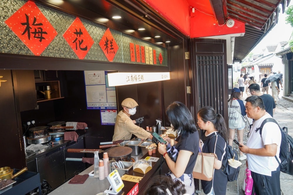 7月6日,游客在平江路一家小吃店選購特色小吃。